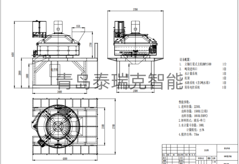 下面介绍一下快搬式UHPC混凝土搅拌站TMP1500型,该套设备设计紧凑、组装拆卸运输均方便,到场当天即可打料,主搅拌电机为75kw,单次可搅拌1.2m³UHPC,一小时可产6-7m³,高效便捷,可罐车接料可料斗接料,适合较大方量的UHPC铺装施工。